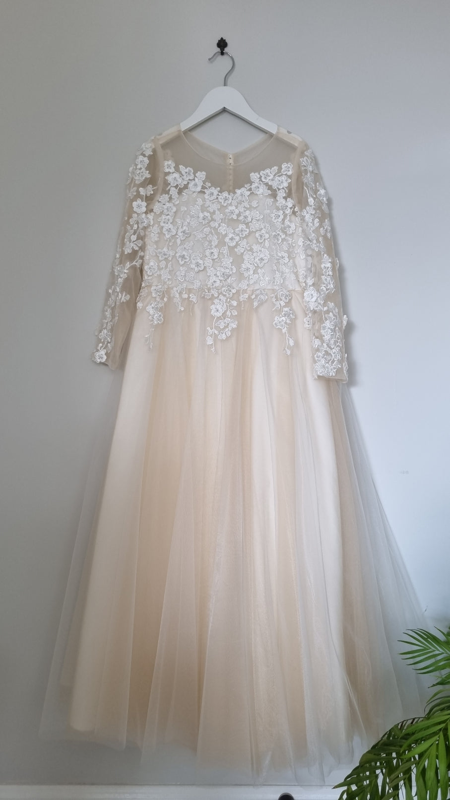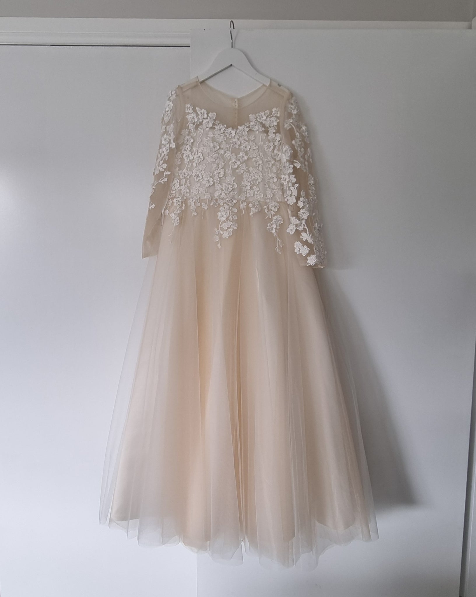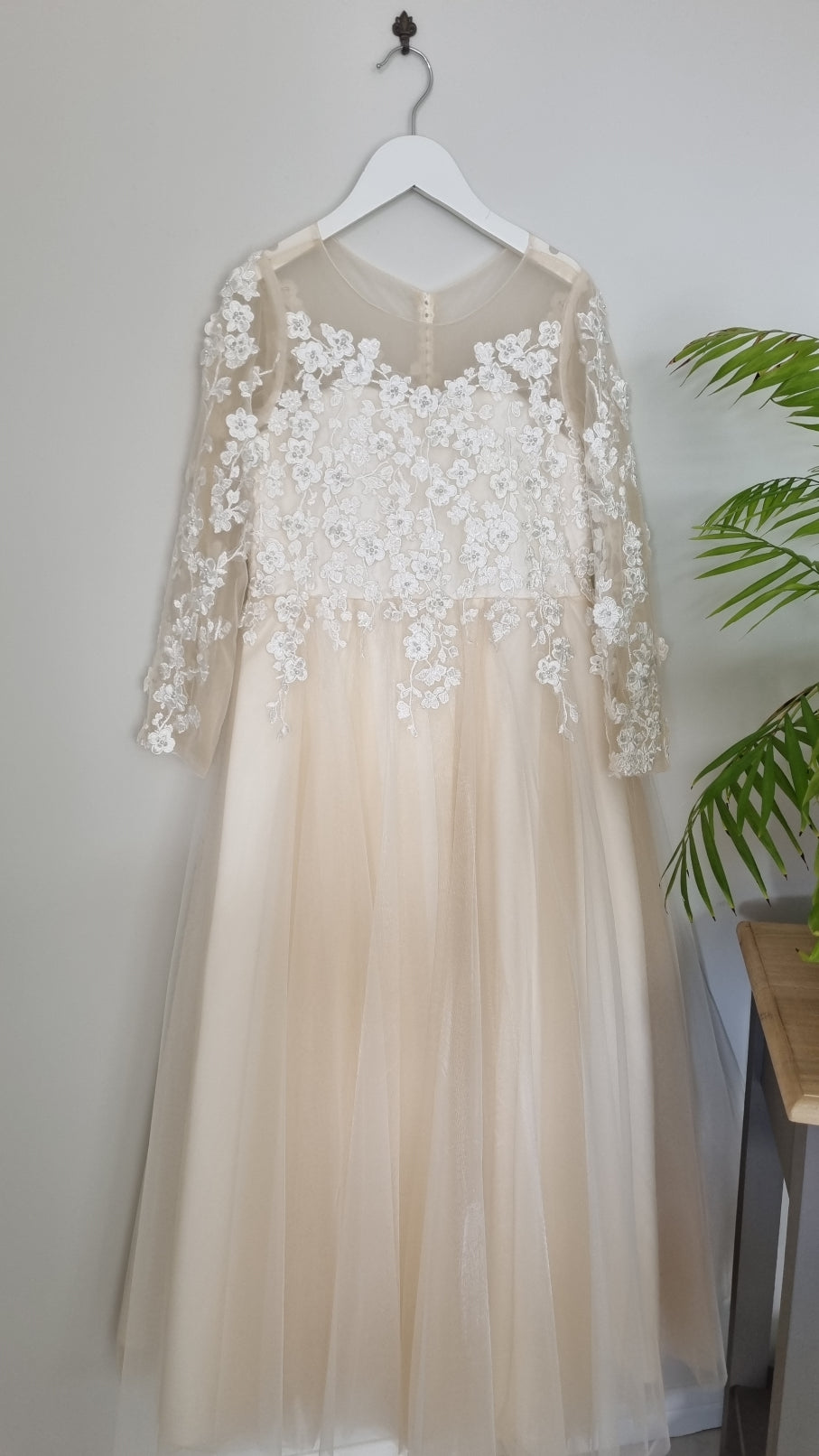 Alexia is a Champagne dress designed to make every special occasion unforgettable. It features a stunning ball gown skirt that flows gracefully, creating a dramatic and elegant silhouette. The bodice is adorned with intricate embellishments that catch the light beautifully, adding a touch of glamour and sophistication. Perfect for celebrations where you want to stand out, this dress combines classic charm with refined details, ensuring you look and feel radiant from every angle.